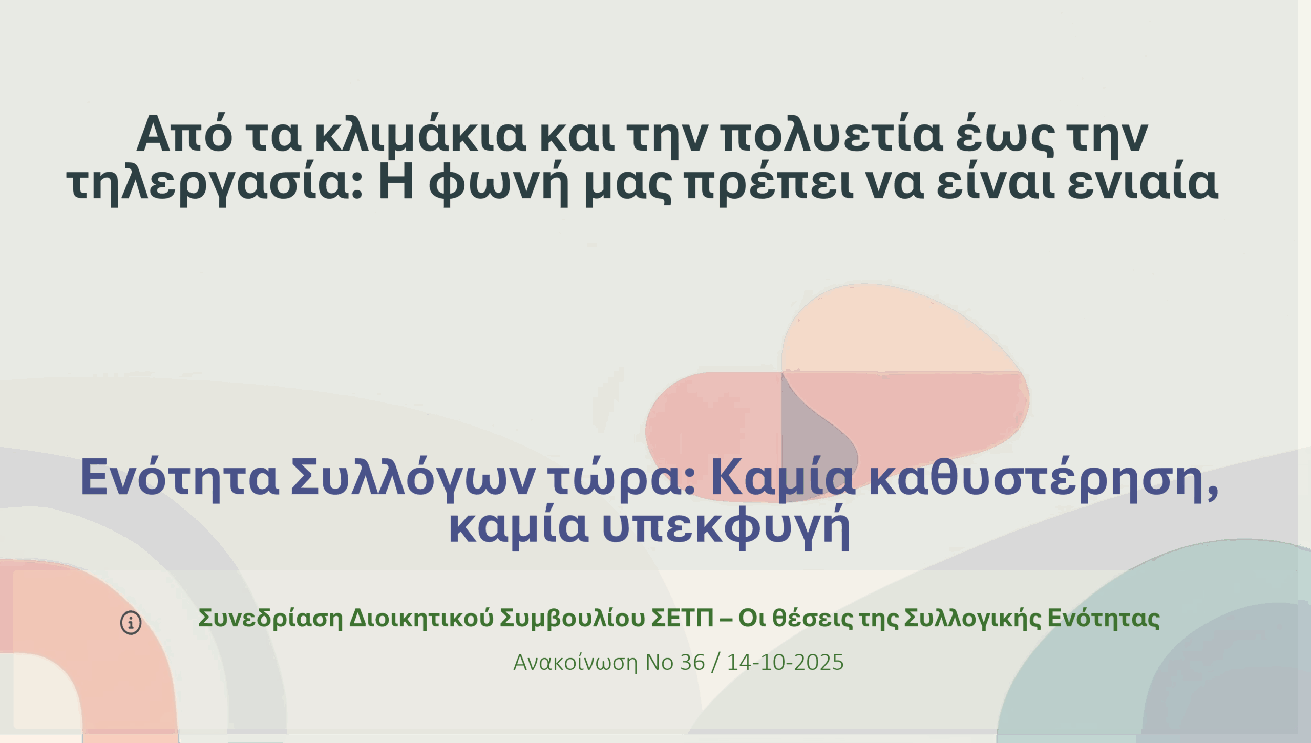 Ανακοίνωση – απάντηση στην κοινή πρωτοβουλία ΣΕΤΠ & ΣΕΤΑΠ και στη στάση της ΟΤΟΕ