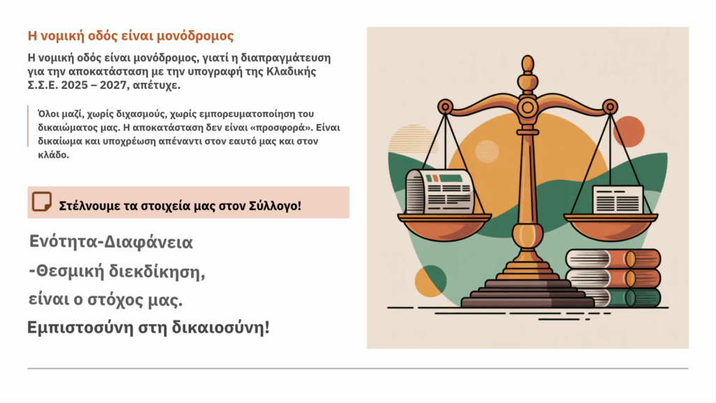 - Δεν είναι οι συνάδελφοι που “στηρίζουν” τη δικαστική διεκδίκηση. Είναι οι Σύλλογοι εκείνοι που οφείλουν να πρωτοστατήσουν και να στηρίξουν τον αγώνα των εργαζομένων.