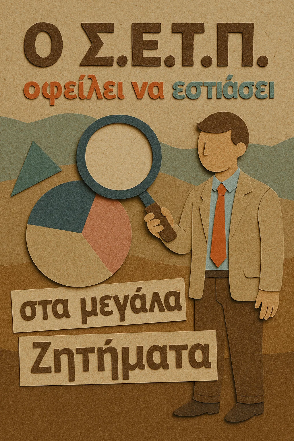 - Ο Σ.Ε.Τ.Π. οφείλει να εστιάσει στα μεγάλα ζητήματα που απασχολούν τους εργαζόμενους.